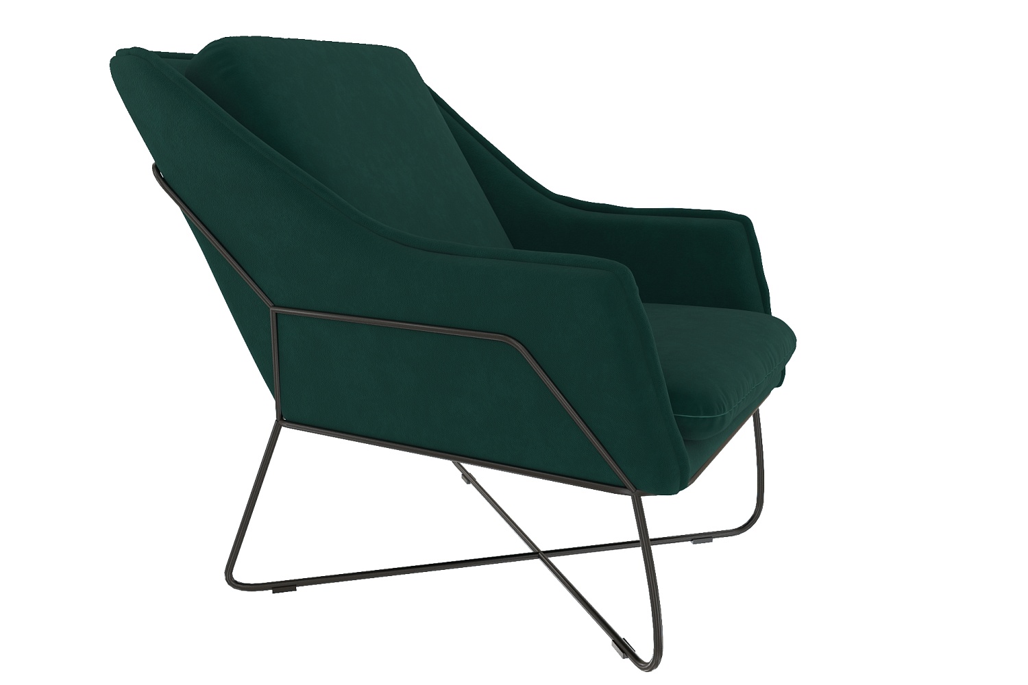 Мебель отличается повышенным уровнем комфорта. Спинка и подлокотники подстроены под анатомию человеческого тела. Подушка выполнена из пенополиуретана толщиной в 6 см, снабжена настилом из синтепона. В таком кресле приятно отдыхать, читать книгу, релаксировать в положении полулежа. Конструкция изготовлена из нейтральных, экологических чистых материалов — бруса хвойной породы, гнутоклееной фанеры и металлической трубы. Велюровая обивка насыщенного, темно-зеленого оттенка, которая впишется в помещение industrial или модерн.